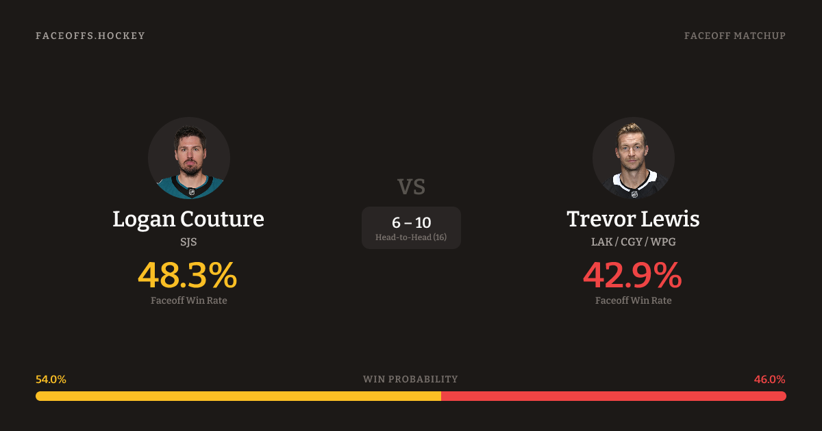 Logan Couture vs Trevor Lewis — Faceoff Head-to-Head