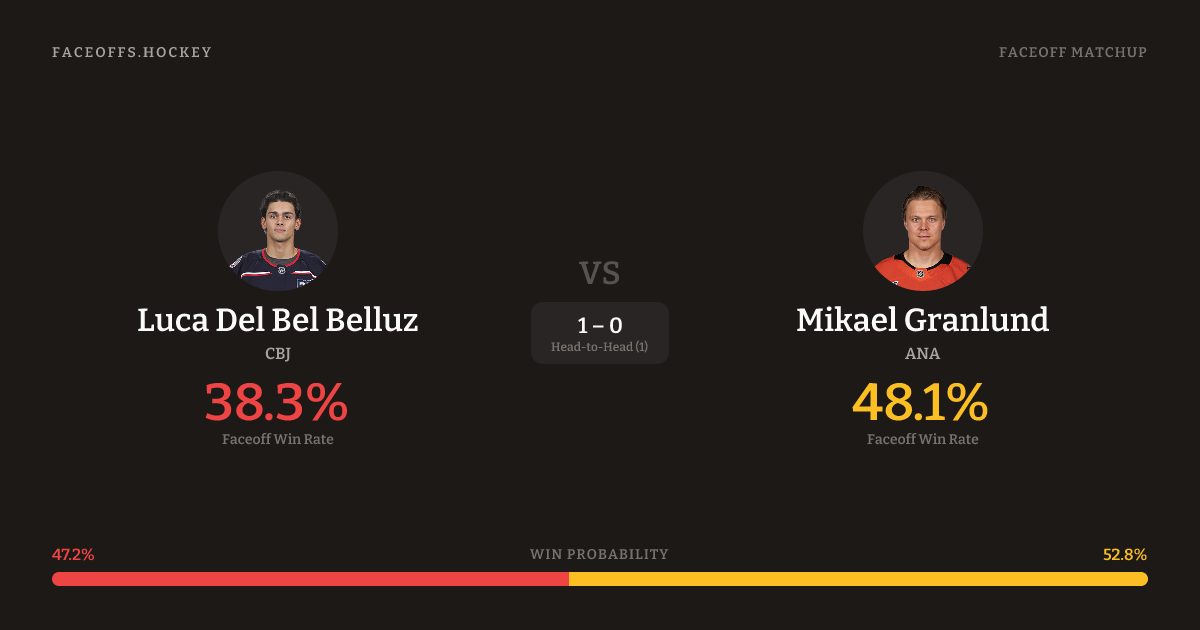 Luca Del Bel Belluz vs Mikael Granlund — Faceoff Head-to-Head
