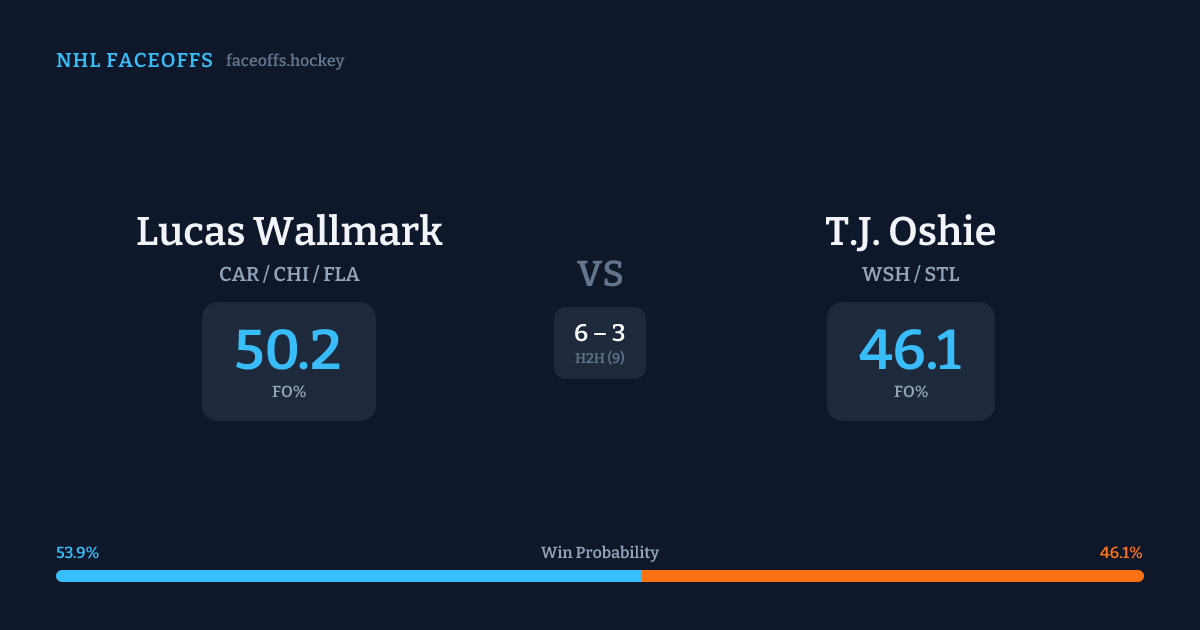 Lucas Wallmark vs T.J. Oshie — Faceoff Head-to-Head