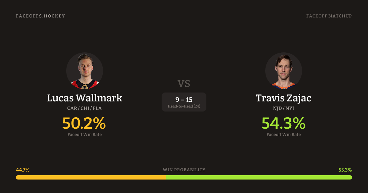 Lucas Wallmark vs Travis Zajac — Faceoff Head-to-Head
