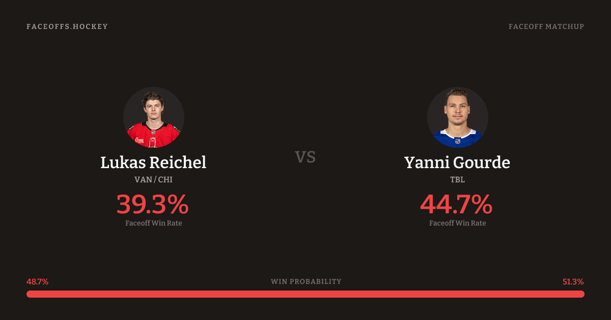 Lukas Reichel vs Yanni Gourde — Faceoff Head-to-Head