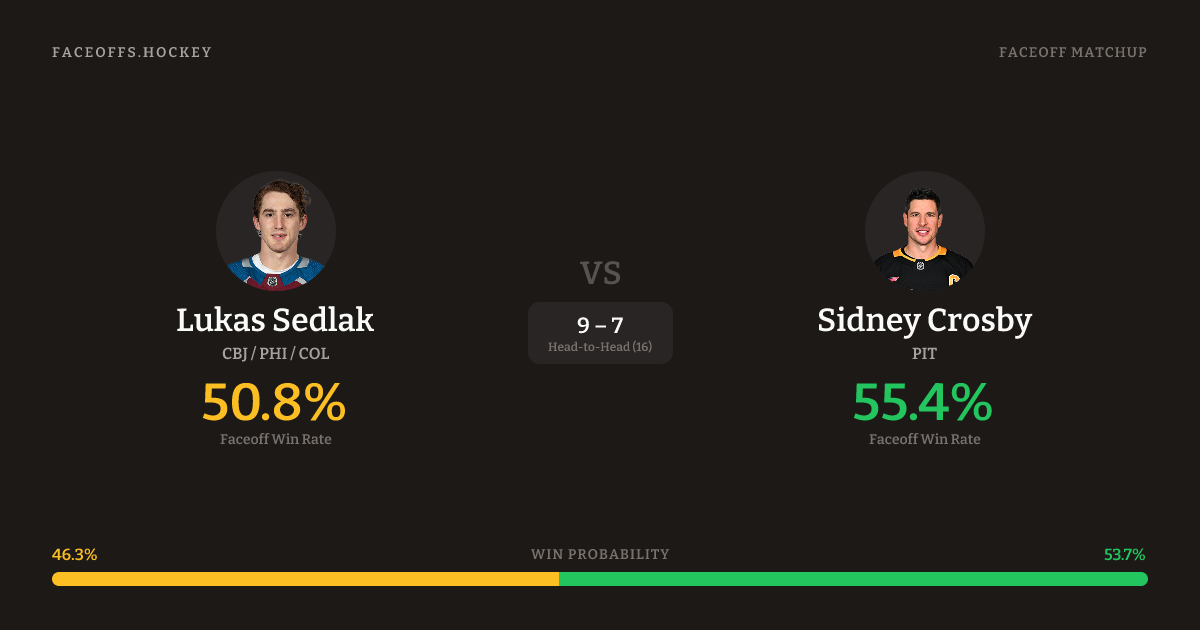 Lukas Sedlak vs Sidney Crosby — Faceoff Head-to-Head