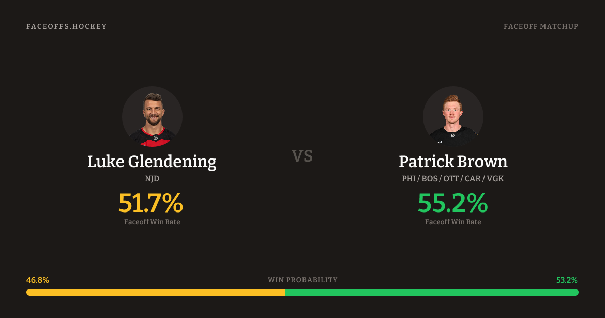 Luke Glendening vs Patrick Brown — Faceoff Head-to-Head