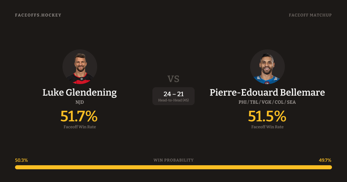 Luke Glendening vs Pierre-Edouard Bellemare — Faceoff Head-to-Head
