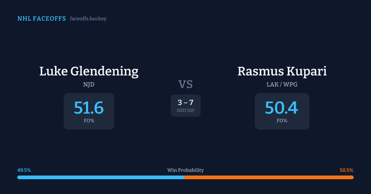 Luke Glendening vs Rasmus Kupari — Faceoff Head-to-Head