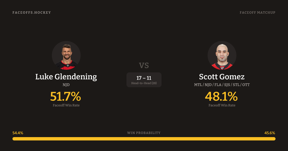 Luke Glendening vs Scott Gomez — Faceoff Head-to-Head
