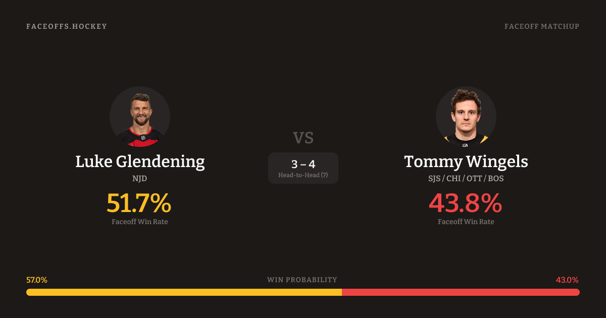 Luke Glendening vs Tommy Wingels — Faceoff Head-to-Head