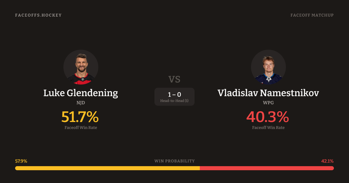 Luke Glendening vs Vladislav Namestnikov — Faceoff Head-to-Head