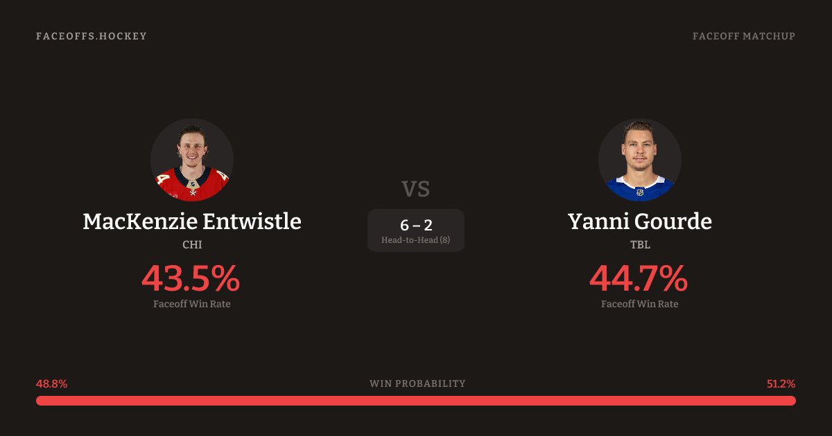 MacKenzie Entwistle vs Yanni Gourde — Faceoff Head-to-Head