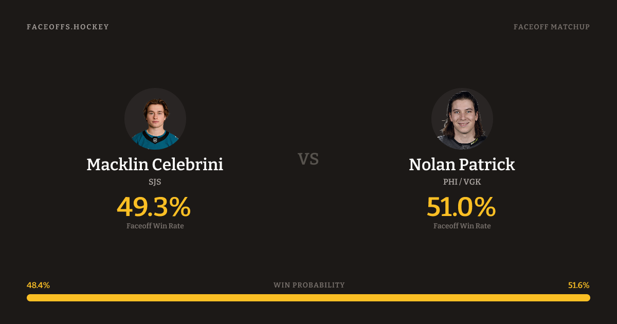 Macklin Celebrini vs Nolan Patrick — Faceoff Head-to-Head