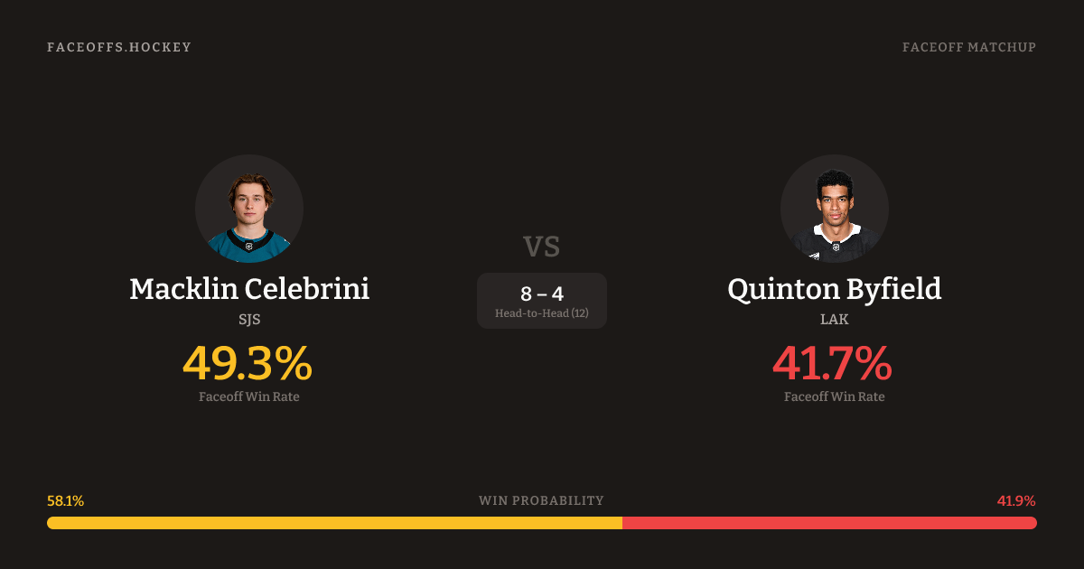 Macklin Celebrini vs Quinton Byfield — Faceoff Head-to-Head
