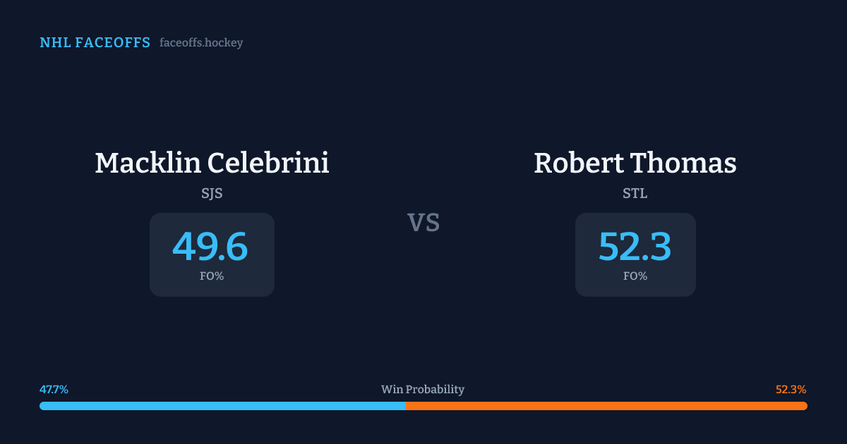 Macklin Celebrini vs Robert Thomas — Faceoff Head-to-Head