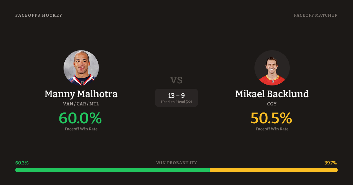 Manny Malhotra vs Mikael Backlund — Faceoff Head-to-Head