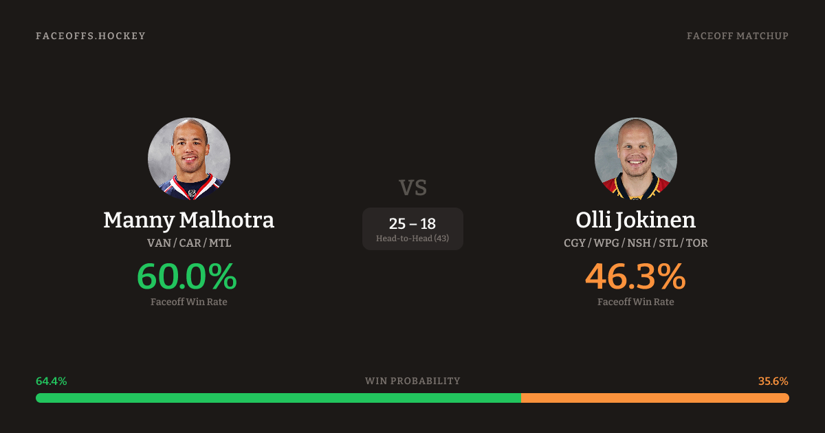 Manny Malhotra vs Olli Jokinen — Faceoff Head-to-Head