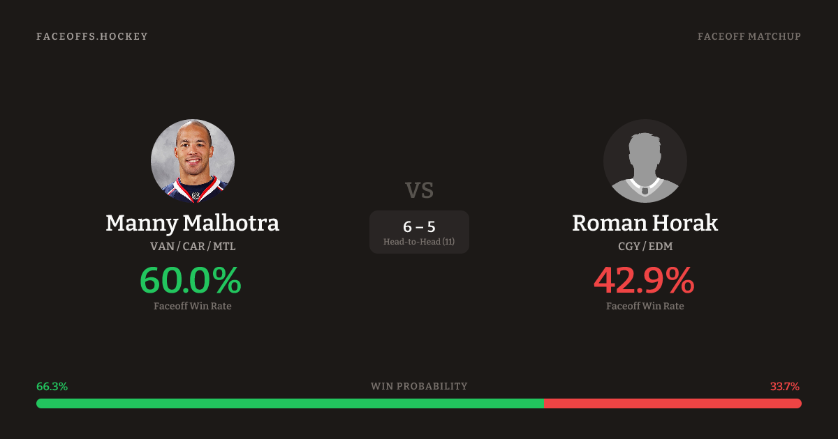 Manny Malhotra vs Roman Horak — Faceoff Head-to-Head