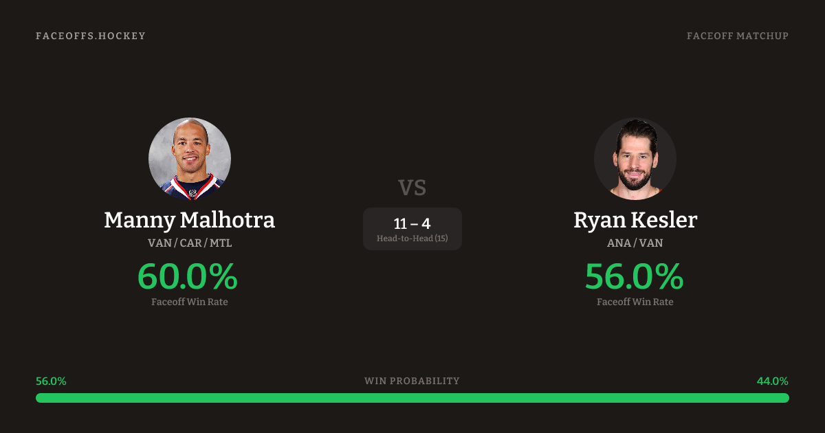 Manny Malhotra vs Ryan Kesler — Faceoff Head-to-Head