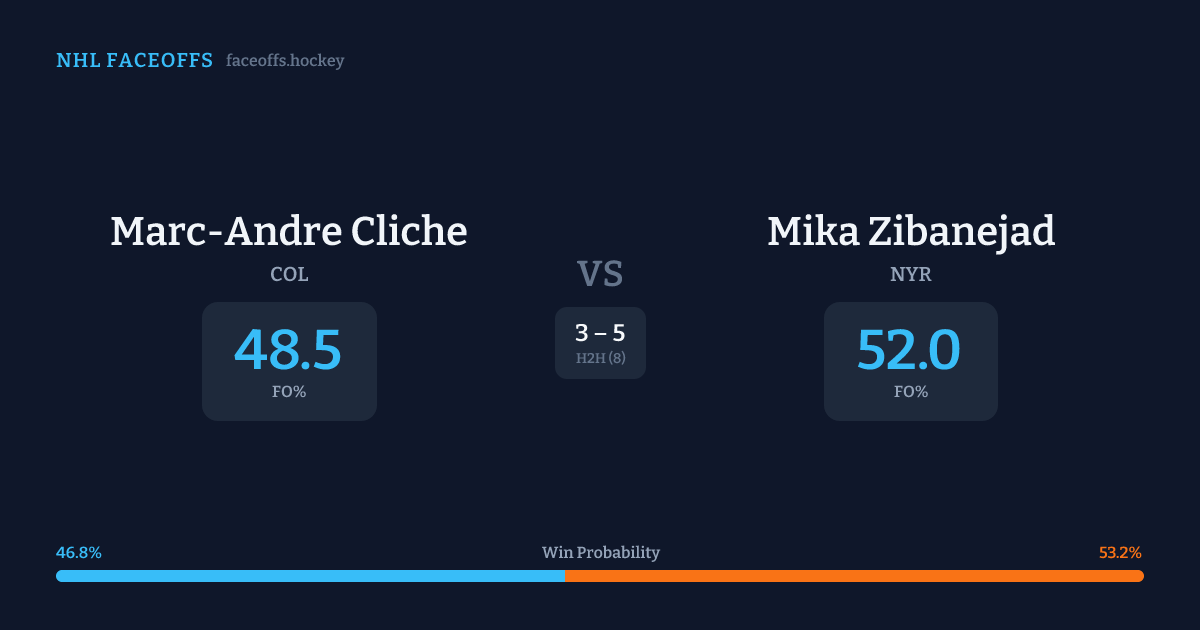 Marc-Andre Cliche vs Mika Zibanejad — Faceoff Head-to-Head