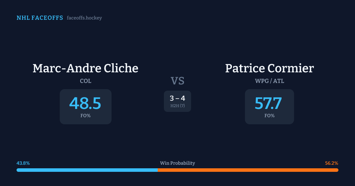 Marc-Andre Cliche vs Patrice Cormier — Faceoff Head-to-Head