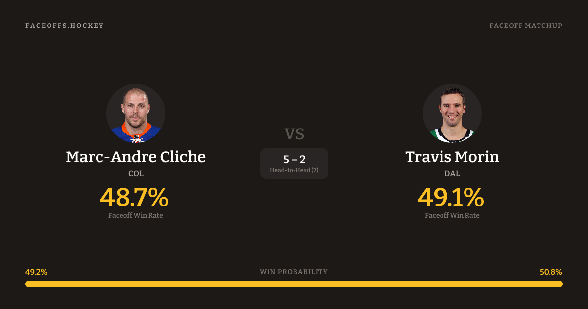 Marc-Andre Cliche vs Travis Morin — Faceoff Head-to-Head