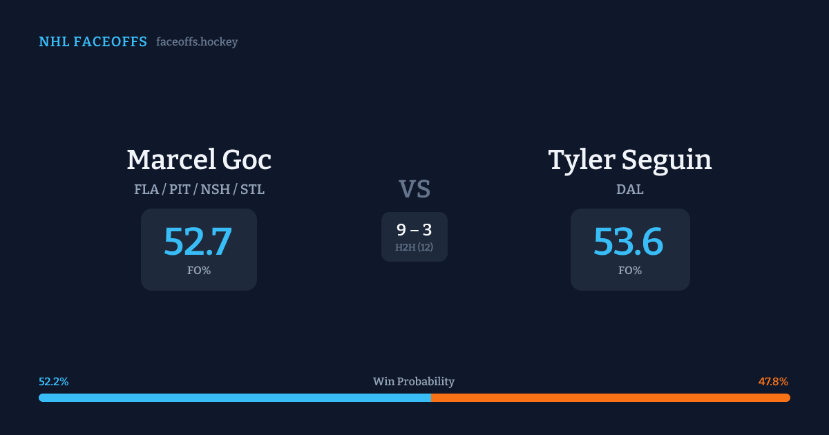 Marcel Goc vs Tyler Seguin — Faceoff Head-to-Head