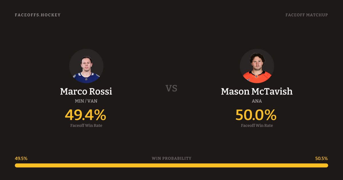 Marco Rossi vs Mason McTavish — Faceoff Head-to-Head