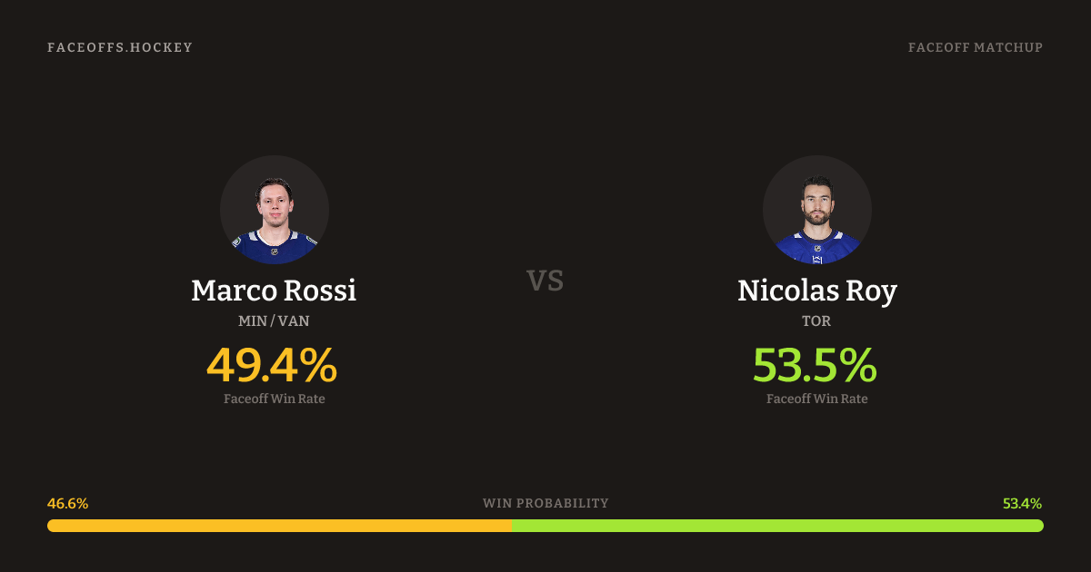 Marco Rossi vs Nicolas Roy — Faceoff Head-to-Head