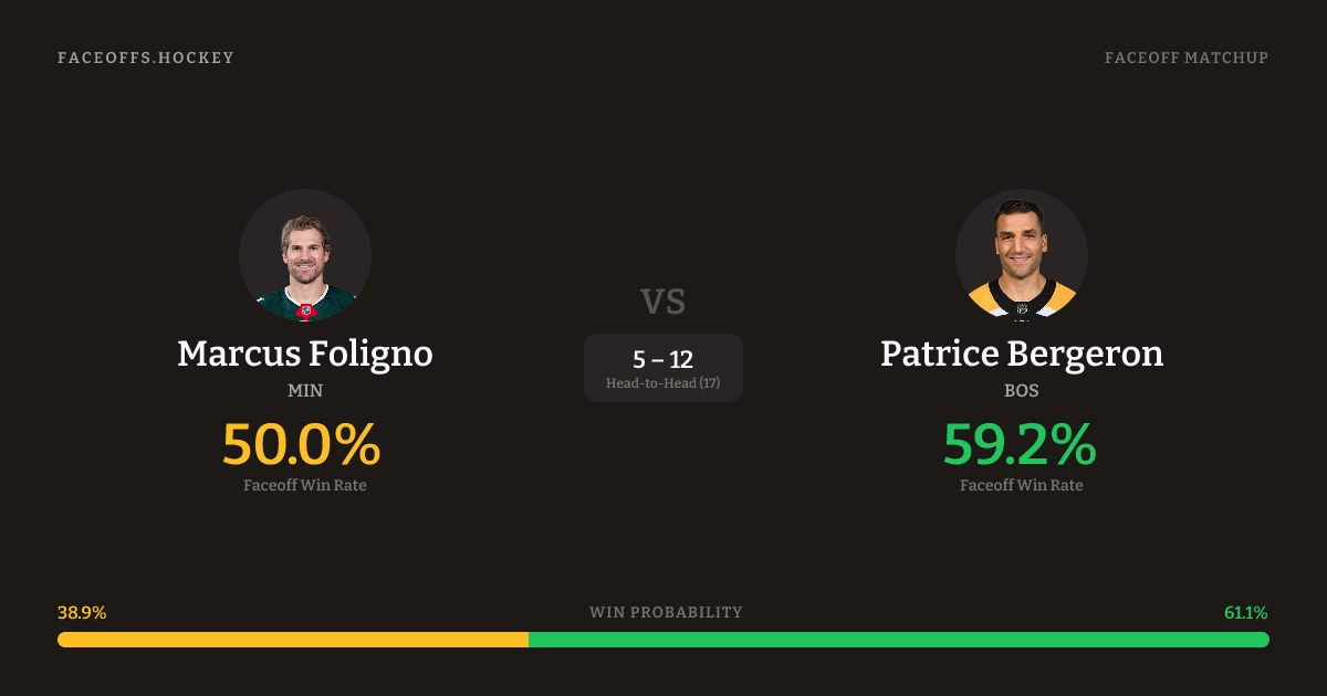 Marcus Foligno vs Patrice Bergeron — Faceoff Head-to-Head