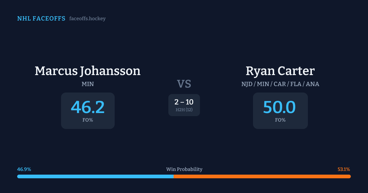 Marcus Johansson vs Ryan Carter — Faceoff Head-to-Head