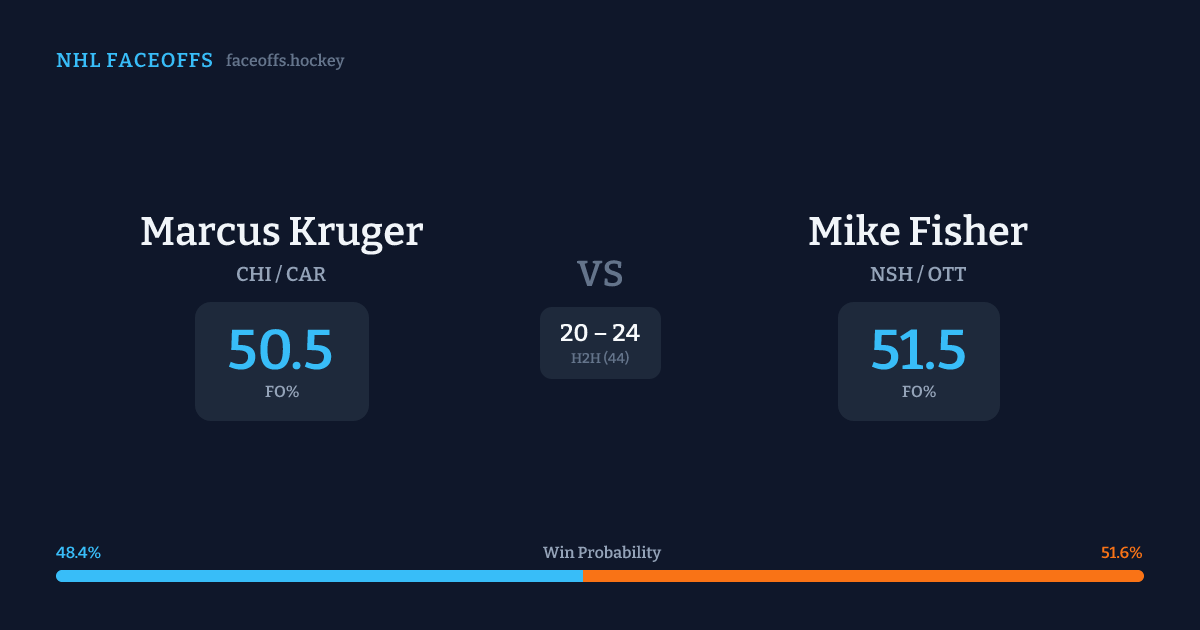 Marcus Kruger vs Mike Fisher — Faceoff Head-to-Head