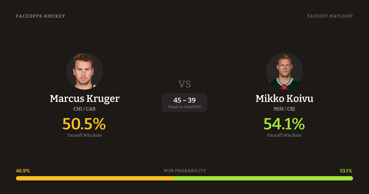 Marcus Kruger vs Mikko Koivu — Faceoff Head-to-Head