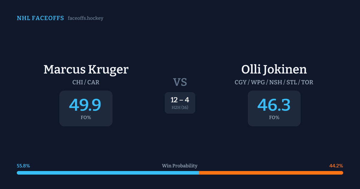 Marcus Kruger vs Olli Jokinen — Faceoff Head-to-Head