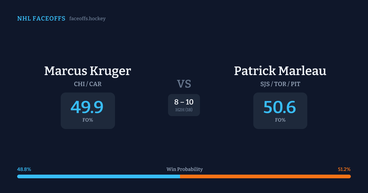 Marcus Kruger vs Patrick Marleau — Faceoff Head-to-Head