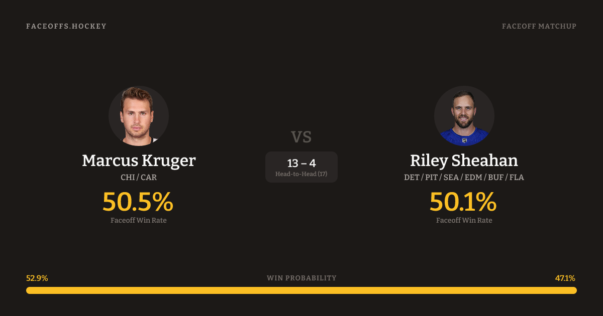 Marcus Kruger vs Riley Sheahan — Faceoff Head-to-Head