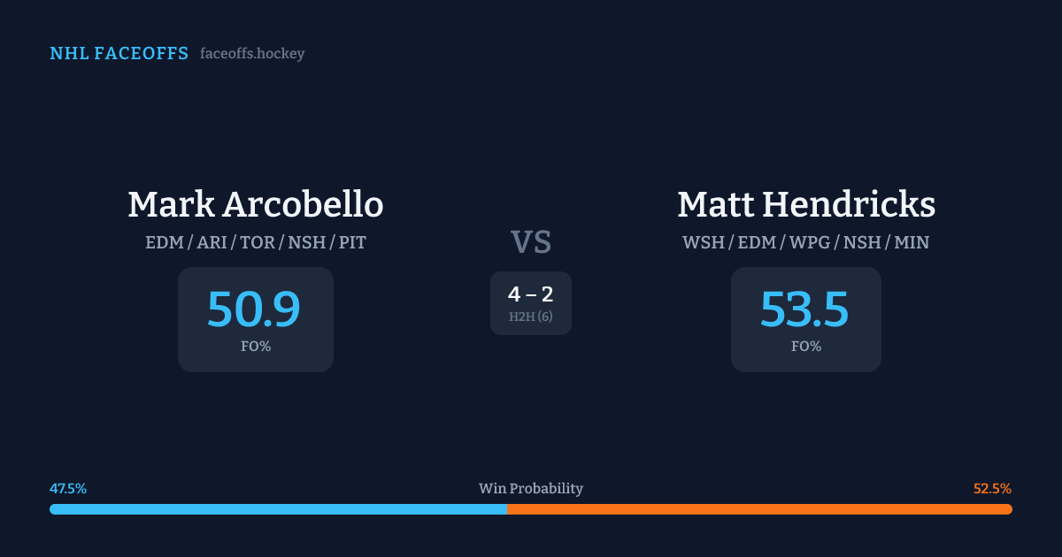 Mark Arcobello vs Matt Hendricks — Faceoff Head-to-Head