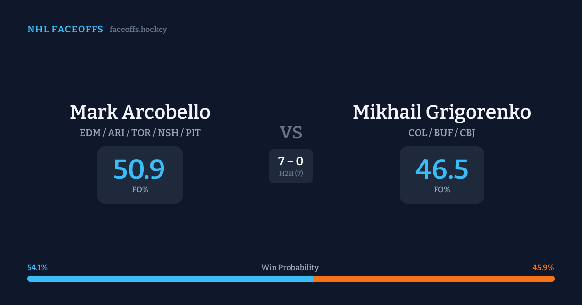 Mark Arcobello vs Mikhail Grigorenko — Faceoff Head-to-Head