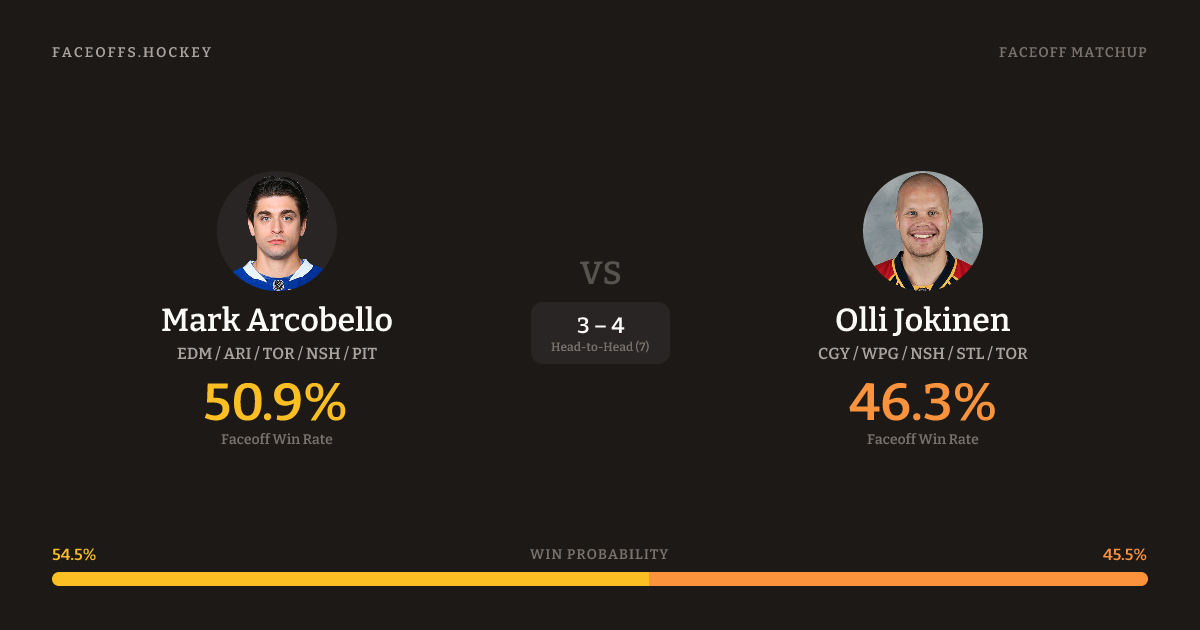 Mark Arcobello vs Olli Jokinen — Faceoff Head-to-Head