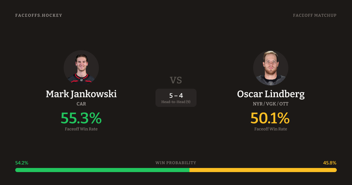Mark Jankowski vs Oscar Lindberg — Faceoff Head-to-Head