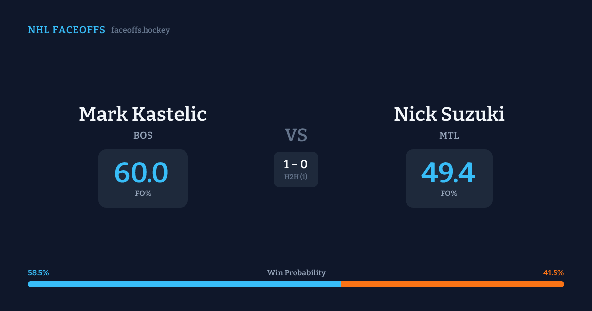 Mark Kastelic vs Nick Suzuki — Faceoff Head-to-Head
