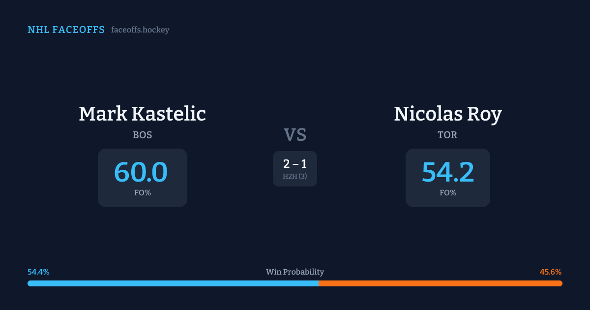 Mark Kastelic vs Nicolas Roy — Faceoff Head-to-Head