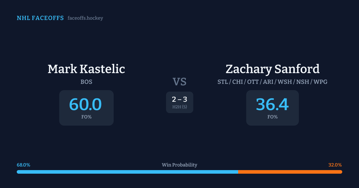 Mark Kastelic vs Zachary Sanford — Faceoff Head-to-Head