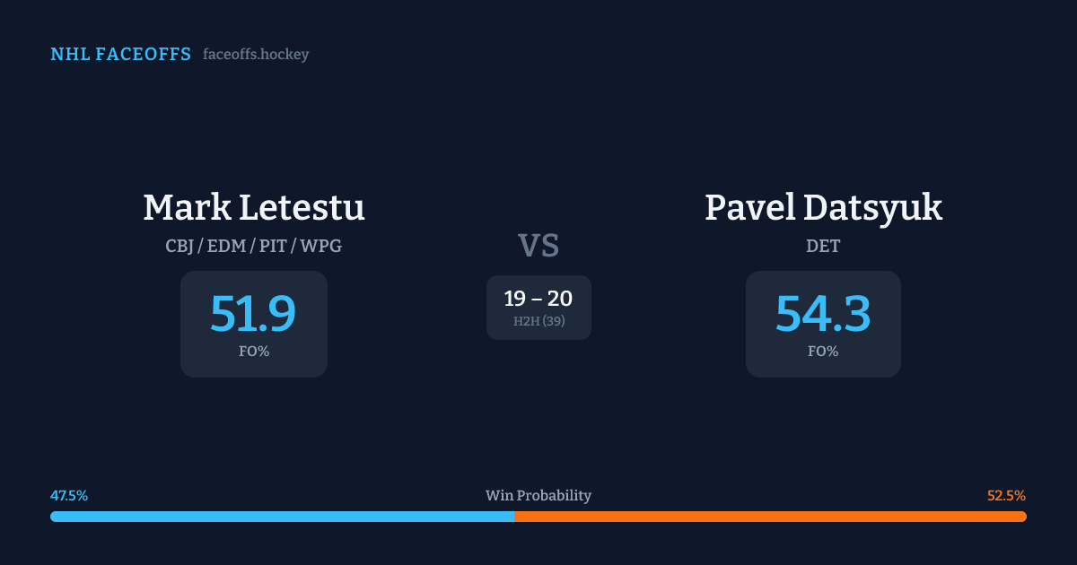 Mark Letestu vs Pavel Datsyuk — Faceoff Head-to-Head