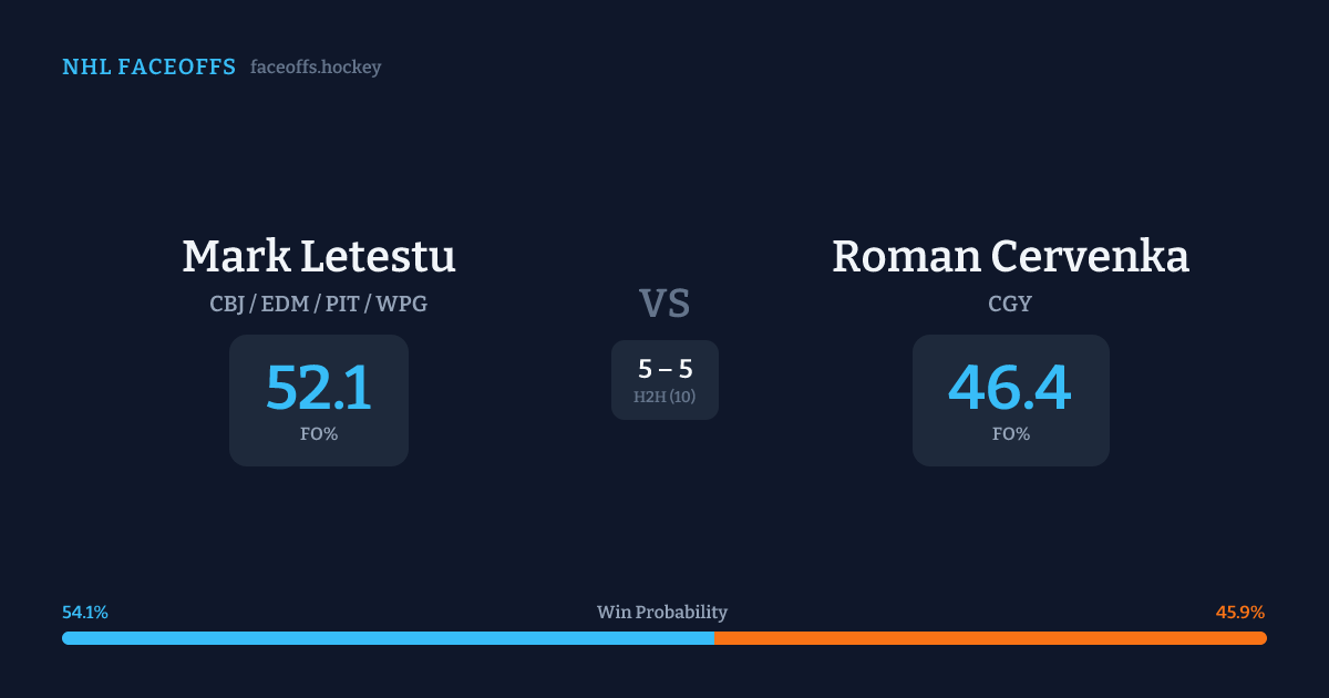Mark Letestu vs Roman Cervenka — Faceoff Head-to-Head