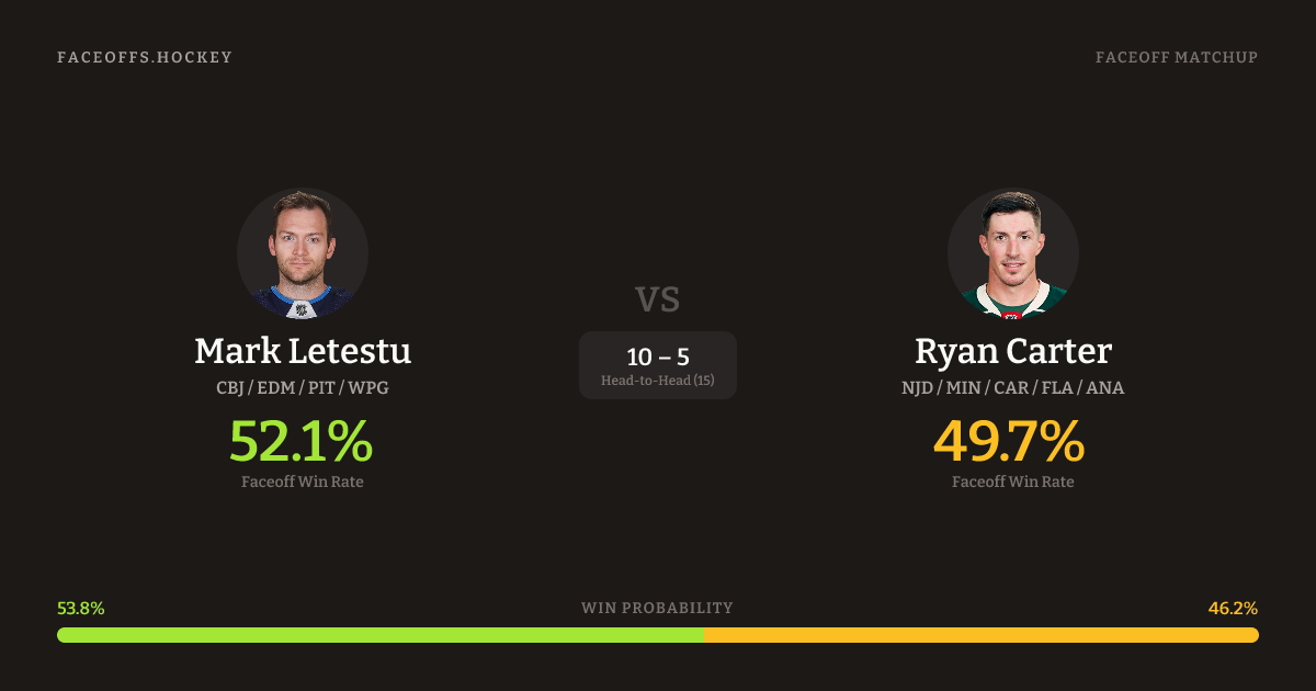 Mark Letestu vs Ryan Carter — Faceoff Head-to-Head