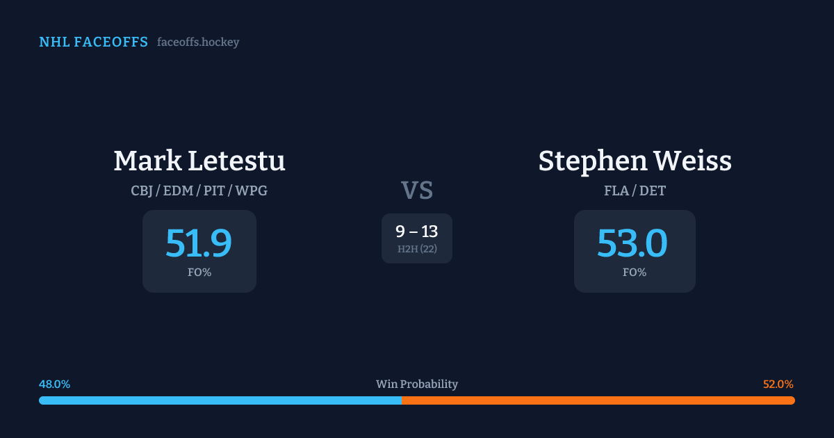 Mark Letestu vs Stephen Weiss — Faceoff Head-to-Head