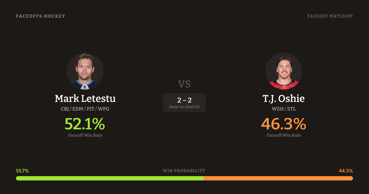 Mark Letestu vs T.J. Oshie — Faceoff Head-to-Head