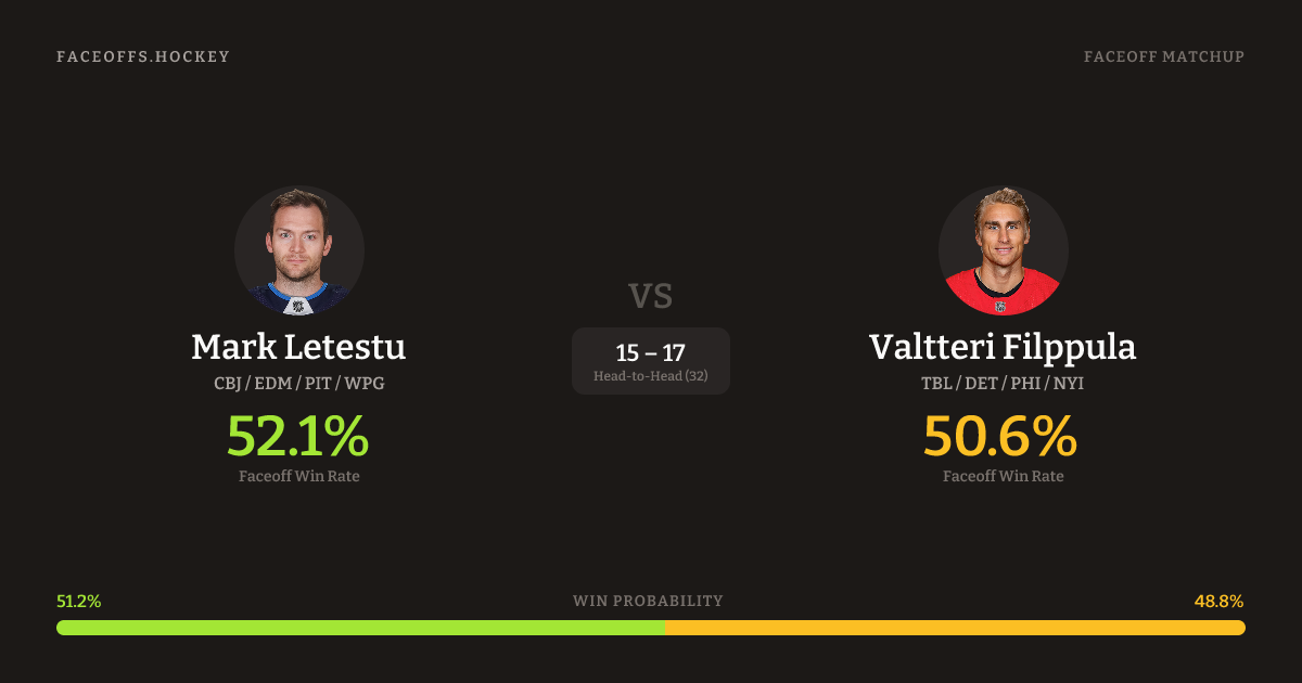 Mark Letestu vs Valtteri Filppula — Faceoff Head-to-Head