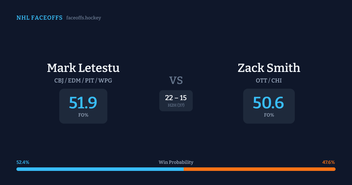 Mark Letestu vs Zack Smith — Faceoff Head-to-Head