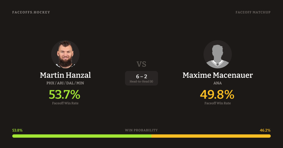 Martin Hanzal vs Maxime Macenauer — Faceoff Head-to-Head