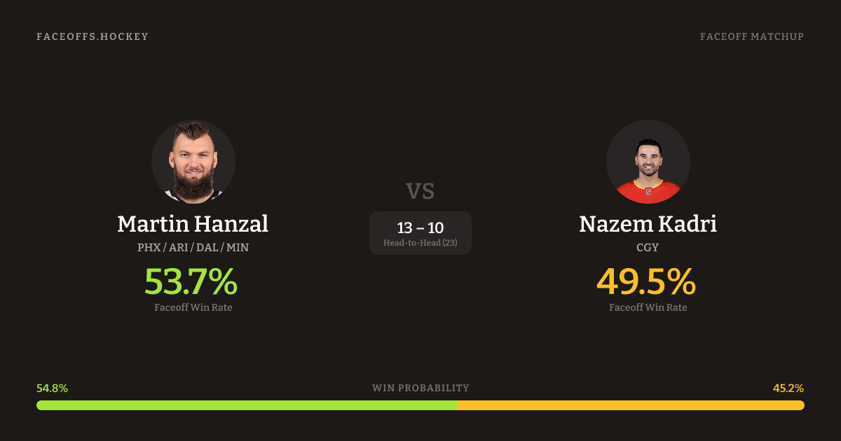 Martin Hanzal vs Nazem Kadri — Faceoff Head-to-Head