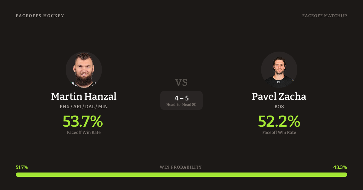 Martin Hanzal vs Pavel Zacha — Faceoff Head-to-Head